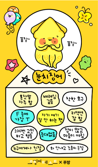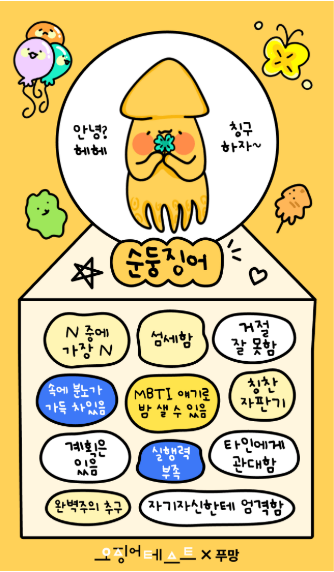 위에서 바로 오징어 테스트 MBTI 해보세요!!