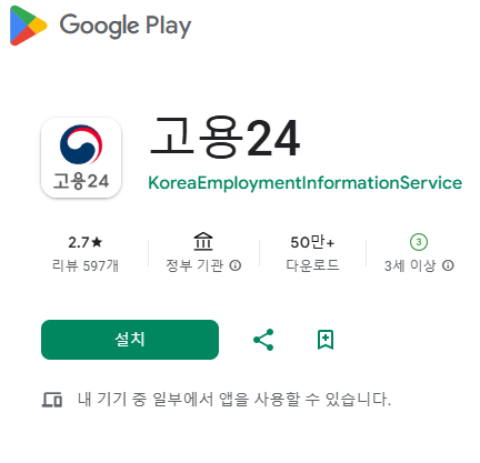 고용 24 앱 설치 후 로그인하여 간편하게 신청.
